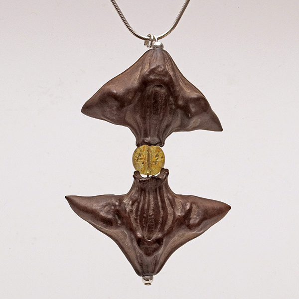 20" Sterling Silver Snake Chain, Head-Pin & 2 Spacer beads, 2 Water Caltrop Chestnut Seed Pods, 1 Round Citrine bead. |