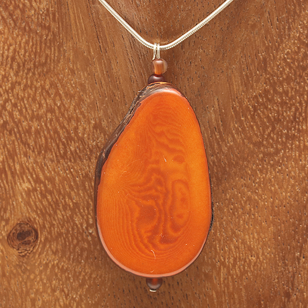 20" Sterling Silver Snake Chain & Head-Pin, 3 Tiny Round carnelian beads, 1 Orange Coloured Thick Slice Tagua Nut Central bead. |