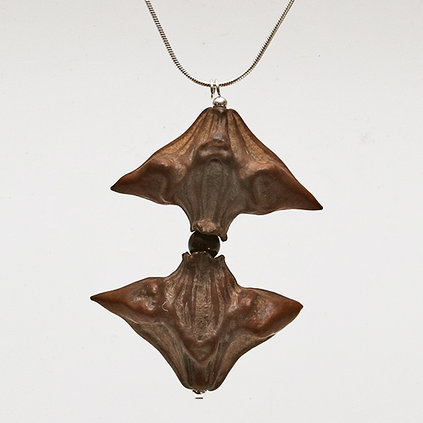 20" Sterling Silver Snake Chain, Head-Pin & 2 Spacer beads, 2 Water Caltrop Chestnut Seed Pods, 1 Round Jett bead. |