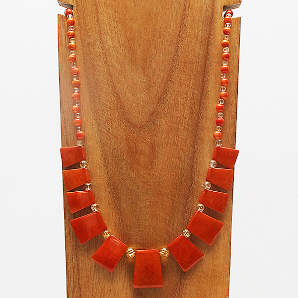 24 Tiny Round Tagua Seed beads in: Dark Red, Red, Orange, Saffron & Yellow colours, 24 Tiny-Small Round Tagua Seed beads in: Dark Red, Red, Orange, Saffron & Yellow colours, 24 Small Round Tagua Seed beads in: Dark Red, Red, Orange, Saffron & Yellow colours, 8 Medium Round Tagua Seed beads in: Dark Red, Red, Orange, Saffron & Yellow colours, 9 Large Round Tagua Seed beads in: Dark Red, Red, Orange, Saffron & Yellow colours. Strung on Red Coloured Flexi Beading Wire, plus Sterling Silver Magnetic Clasp & Crimp beads. |