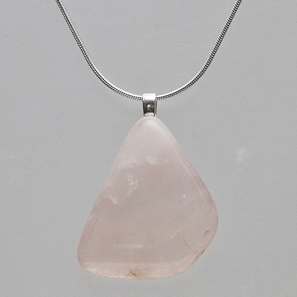 20" Sterling Silver Snake Chain & Flat Pad Mounting Bail, 1 Triangular shaped Polished Rose Quartz Nugget. |