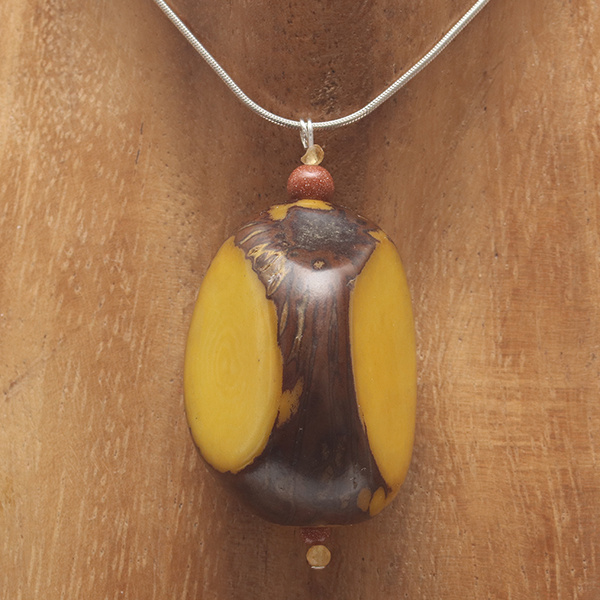 20" Sterling Silver Snake Chain & Head-Pin, 2 Tiny Faceted Golden Imperial Topaz beads, 1 Small Round Goldstone bead, 1 Yellow Coloured Triangle Tagua Nut Central bead. |