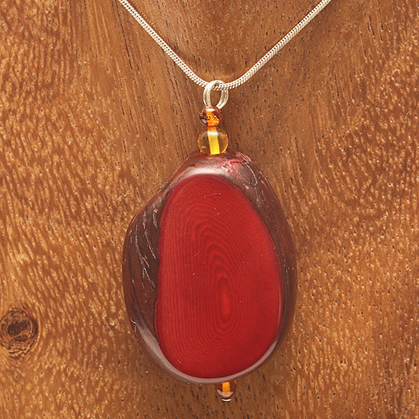 20" Sterling Silver Snake Chain & Head-Pin, 3 Round Amber beads in 2 sizes, 1 Dark Red Coloured Thick Slice Tagua Nut Central bead. |