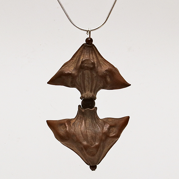 20" Sterling Silver Snake Chain, Head-Pin & 2 Spacer beads, 2 Water Caltrop Chestnut Seed Pods, 1 Round Jett bead. |