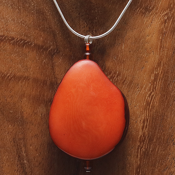 20" Sterling Silver Snake Chain & Head-Pin, 3 Small Round Amber beads, 1 Orange Coloured Flattened Tagua Nut bead. |