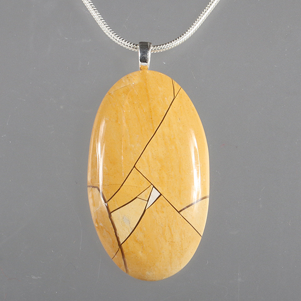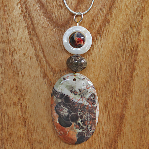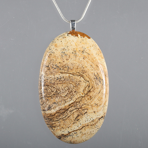 20" Sterling Silver Snake Chain, Flat Pad Mounting Bail, Picture Jasper Cabochon. |