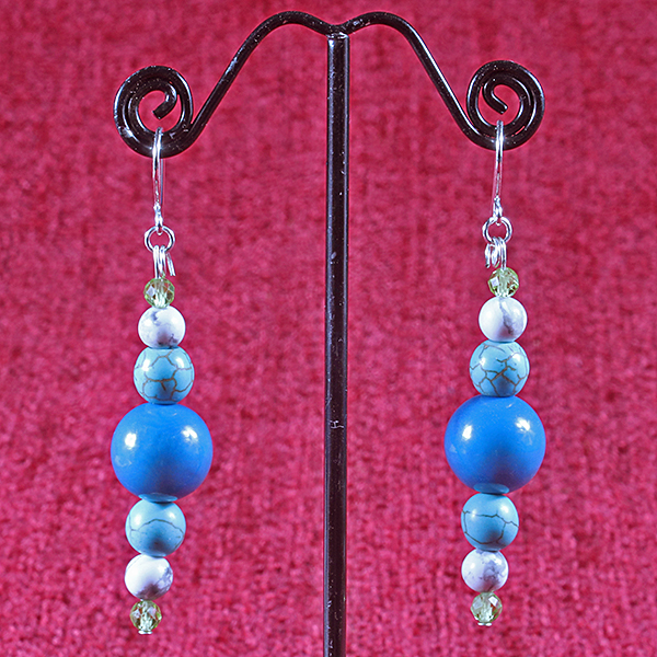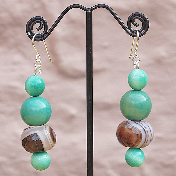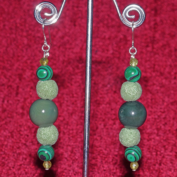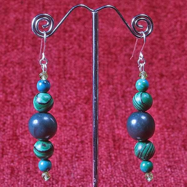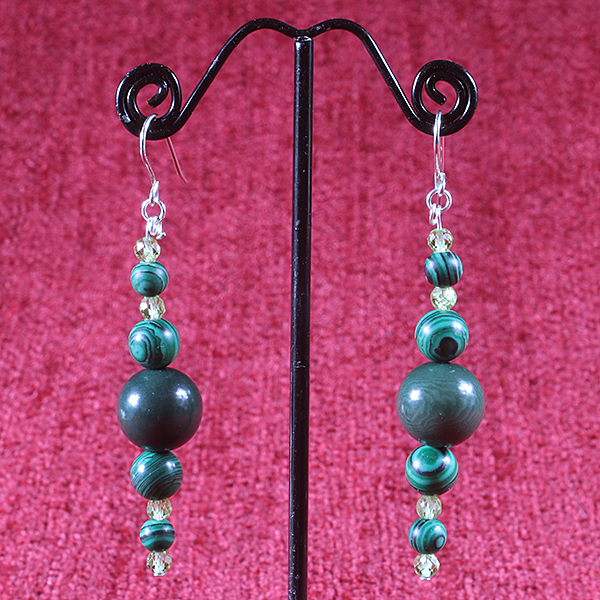 Sterling Silver Ear-hooks, Rings & Head Pins, 7 Round Malachite beads in 2 sizes. |