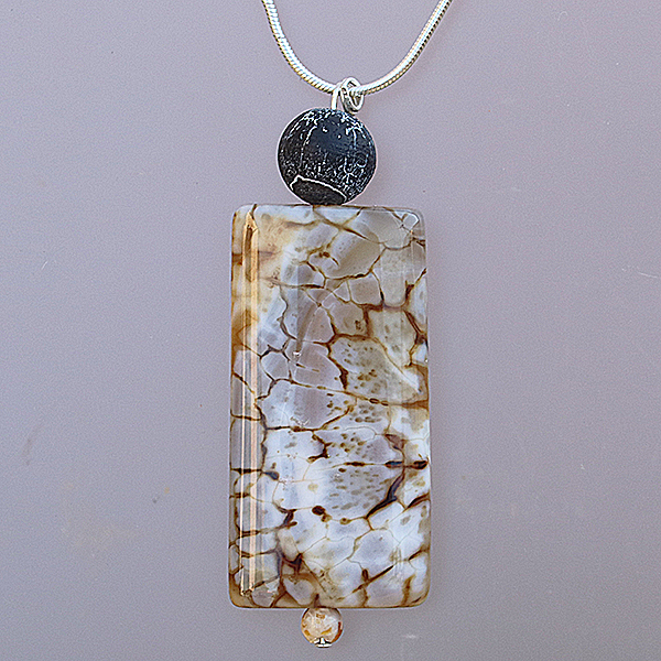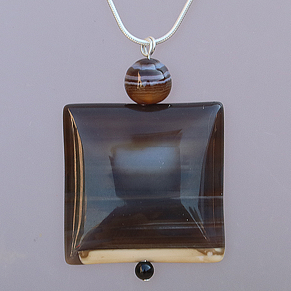 20" Sterling Silver Snake Chain & Head-Pin, 1 Coffee Stripe Agate bead, 1 Square Agate/Jasper Central bead, Tiny Agate bead. |