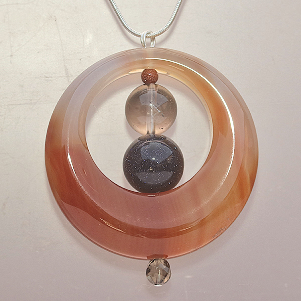 20" Sterling Silver Snake Chain & Head-Pin, 1 Red-White Agate Donut Central bead, 1 Small Goldstone bead, 1 Round Smoky Quartz bead, 1 Round Blue Goldstone bead, 1 Faceted Citrine bead. |