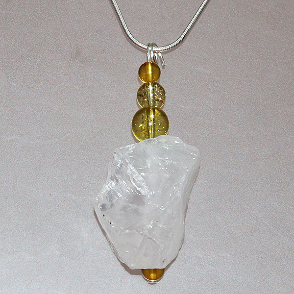 20" Sterling Silver Snake Chain & Head-Pin, 2 Small Amber beads, 2 Citrine beads, 1 Quartz Nugget Central bead. |